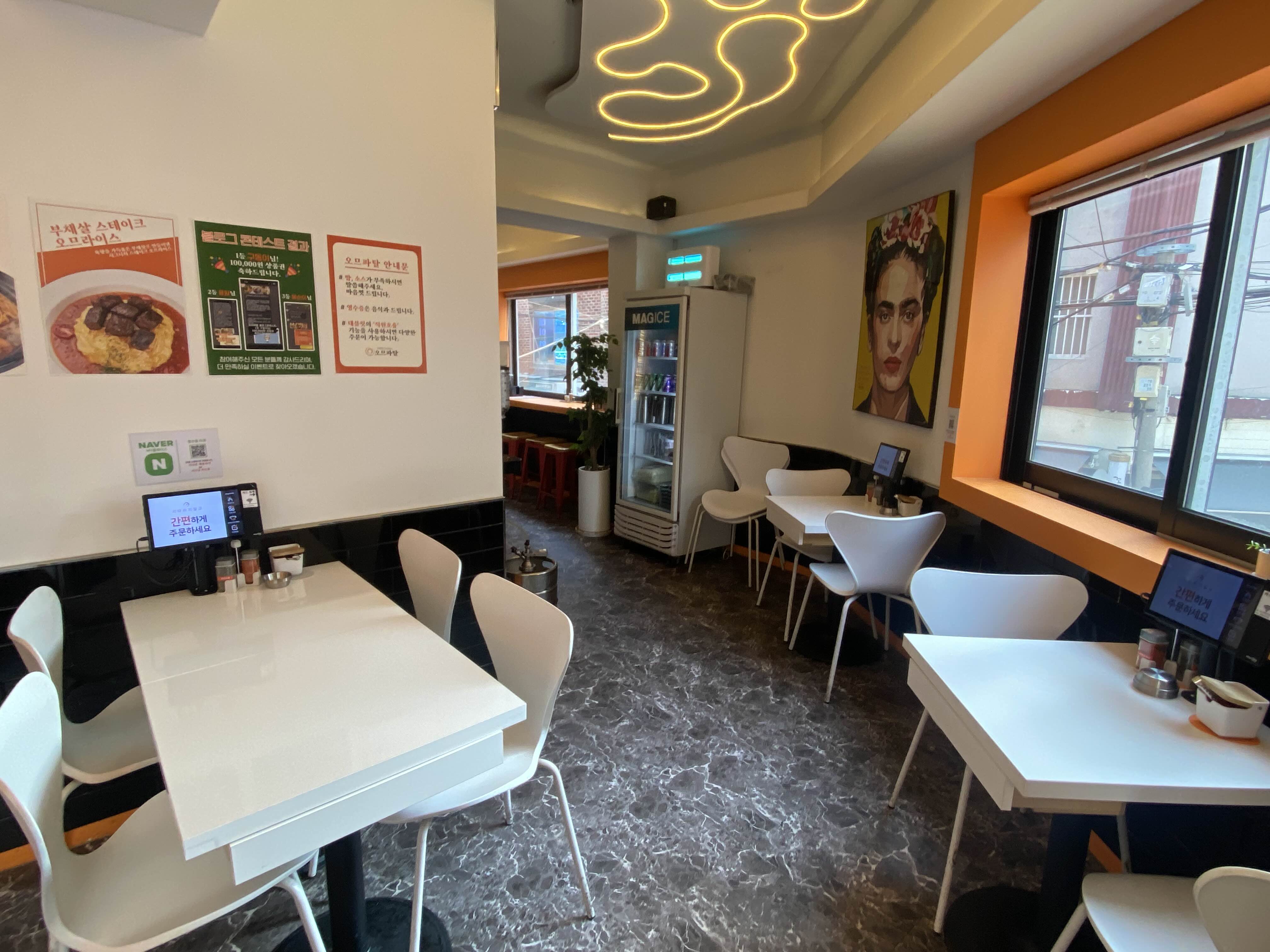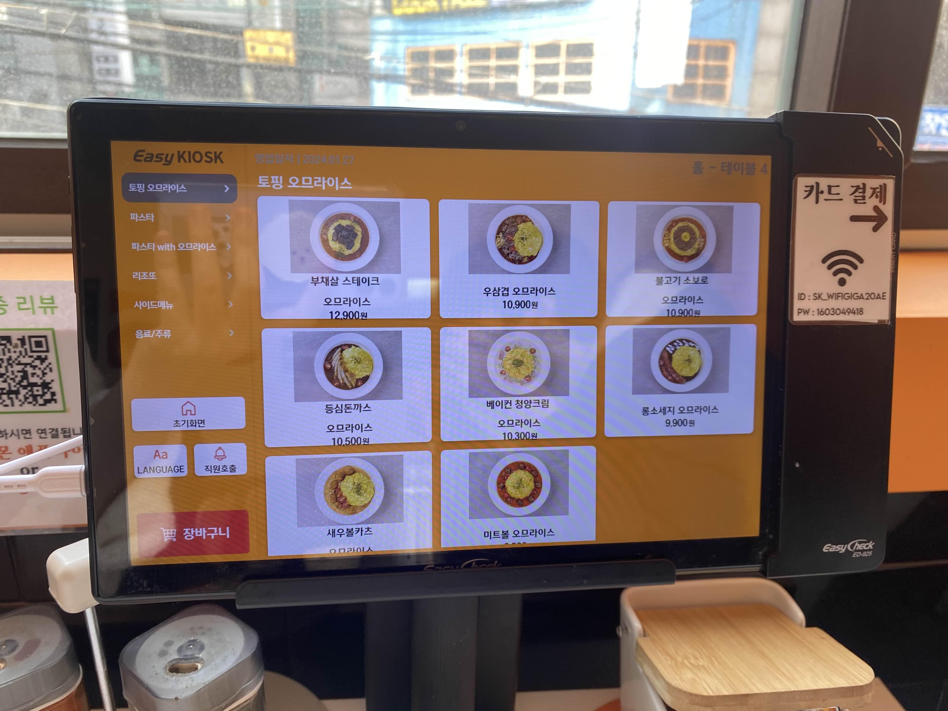 메뉴판&포스기가 각 테이블에 있습니다.
