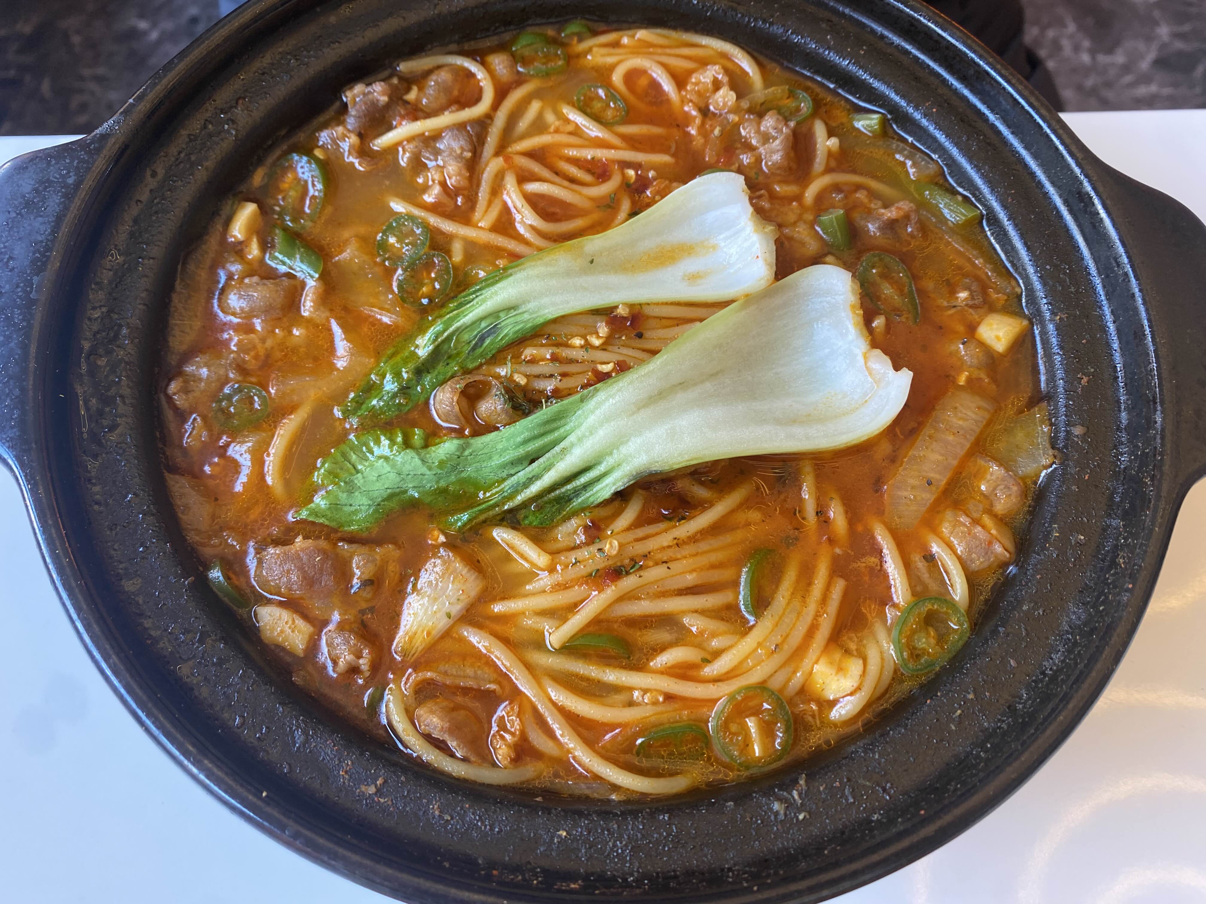 우삼겹 해장 파스타(빼쉐)입니다.